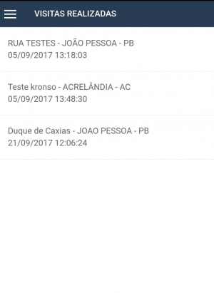 Para visualizar as visitas que foram realizadas através do gestor Kronos, acesse: Gestão > Auditoria > Visitas Realizadas (https://testeskronos.servicenet.com.br/gestao/visitas_realizadas/).