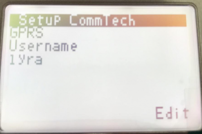 Passo 15: A próxima tela da Comm Tecnology será solicitado UserName pressione a tecla lilás para acessar o menu Edit e digite a senha, que é referente a operadora do chip e pressione a tecla verde