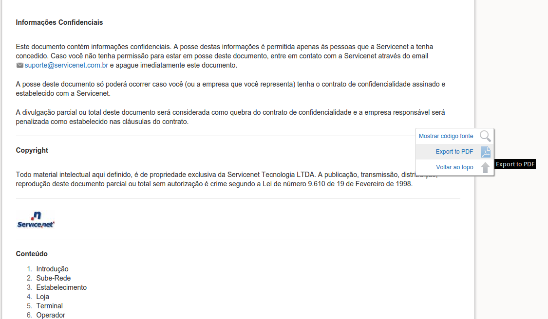 Para utilizarmos a aplicação ServiceNet nos diversos modelos de POS’s existentes no mercado é necessário que tudo esteja bem configurado, esse é um manual básico, mais como um tutorial mostrando como exportar os manuais que aqui se encontram para PDF assim como imprimir o mesmo, podendo assim servir de auxílio na hora de realizar os procedimentos e configurações.