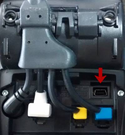 Depois de inserir o pen drive no adaptador, insira o adaptador na porta mini USB na parte de trás do POS.