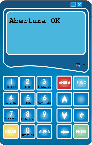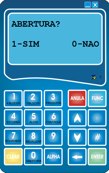 Em primeiro instante, será necessário realizar a abertura do POS. Para isso, na tela de 'Fazer Abertura' do POS tecle '0', em seguida aparecerá uma nova tela para confirmar a abertura conforme as imagens abaixo, tecle '1'.