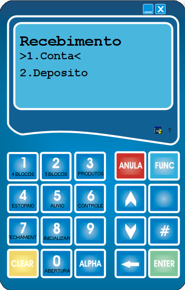 Ao selecionar a opção 'Recebimento' você terá duas opções assim como mostra a imagem abaixo, conta e deposito.