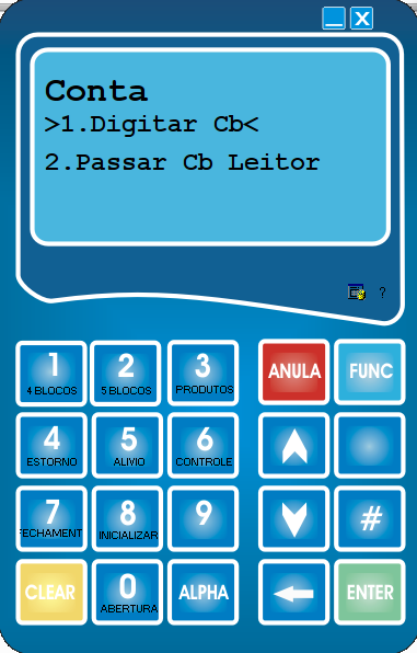 Ao selecionar conta, você terá duas opções digitar o código de barra ou passar o código de barra no leitor.