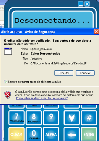 É possível que após a tela de download seja pedido permissão para executar ‘update_posv.exe’, nesse momento, autorize a operação para dar continuidade ao procedimento.