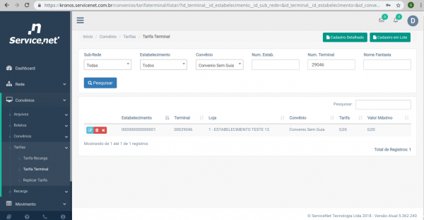 Também é necessário que o terminal tenha a tarifa 'Convênio sem guia' configurada e ativa para que o terminal esteja apto a realizar esse tipo de recebimento