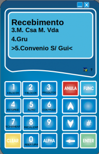 Aparecerá a seguinte tela de menu, clicar na opção “1 - Recebimento” e depois na opção “5 - Convênio S/ Guia”